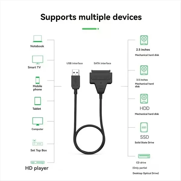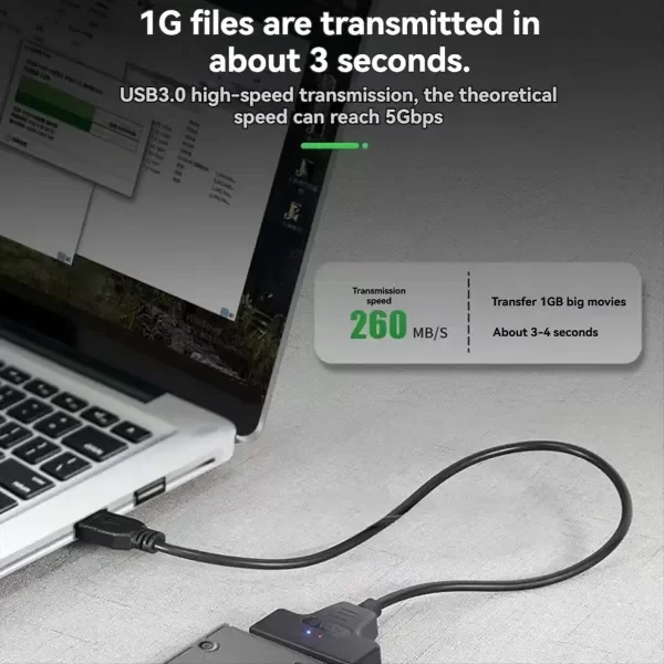 Transferencia de datos a alta velocidad: disfrute de una velocidad de transferencia de hasta 5 Gbps con nuestro cable adaptador SATA a USB 3.0, ideal para SSD o HDD de 2,5 pulgadas. Este adaptador garantiza una transferencia de datos rápida y eficiente. Conectividad sencilla: conecte fácilmente su dispositivo de almacenamiento SATA a un puerto USB 3.0 de su ordenador. Este cable listo para usar no requiere controladores ni software adicionales, por lo que ofrece una experiencia de usuario perfecta. Diseño portátil: ligero y compacto, este cable es perfecto para los profesionales que viajan. Ofrece una solución fiable y práctica para la migración de datos, la clonación de unidades y la copia de seguridad de datos.
