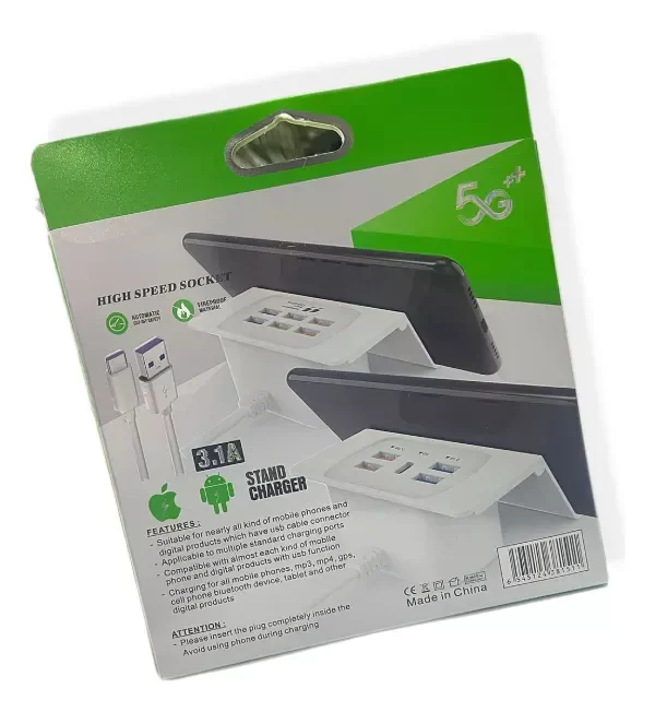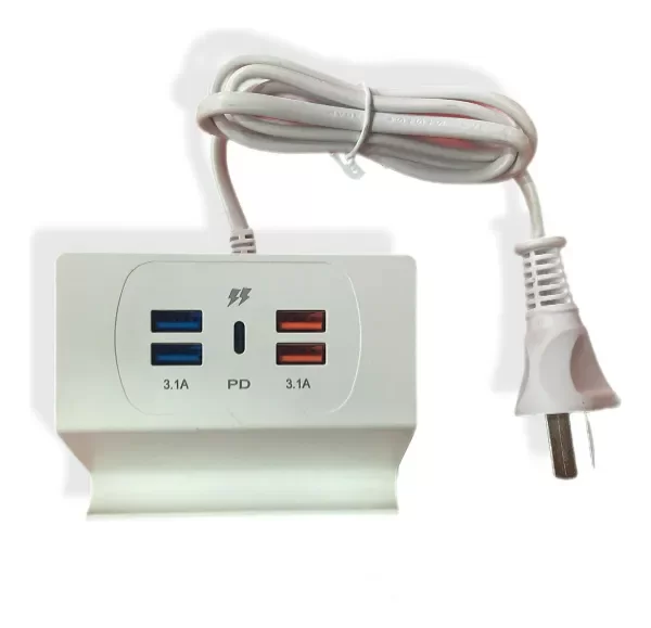 Con el Soporte Cargador 220v 4 Usb 3.1a + Tipo C, disfrutarás de la comodidad de tener un solo cargador para todos tus dispositivos, simplificando tu vida diaria y mejorando tu experiencia de carga.