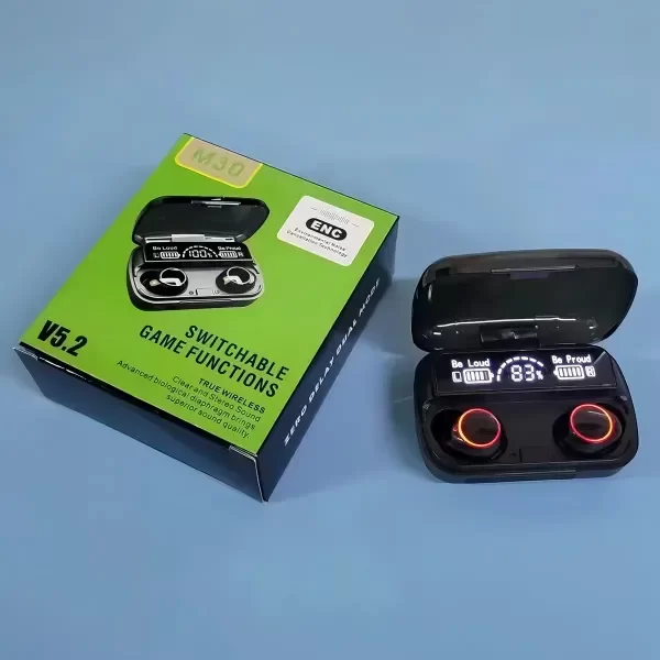 Auricular M30 Para Samsung Inalámbricos Bluetooth Negro Disfruta de la libertad de movimiento con los auriculares M30, diseñados para ofrecer una experiencia auditiva excepcional. Gracias a su conectividad Bluetooth, podrás disfrutar de un sonido de alta calidad sin cables que te limiten. Su diseño ergonómico se adapta cómodamente a tus oídos, permitiendo largas horas de uso sin molestias. La batería de larga duración asegura que puedas escuchar tu música o atender llamadas durante todo el día. Además, cuenta con control de volumen y reproducción, facilitando su uso. Estos auriculares son compatibles con dispositivos Samsung y otros smartphones, lo que los convierte en una opción versátil. Incluyen un estuche de carga para mantenerlos siempre listos y su tecnología TWS garantiza una conexión estable. Con micrófono integrado y luz LED, los M30 son perfectos para cualquier ocasión. El color negro elegante añade un toque de sofisticación a tu estilo. ¡No te quedes sin ellos!