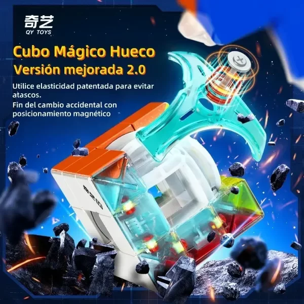 El QiYi Void Magnetic UV 3×3 representa la versión más completa y avanzada del icónico cubo rubik sin centros. Este modelo conserva el clásico desafío del Void Cube —sin piezas centrales ni colores fijos— lo que genera paridades únicas y una experiencia de resolución completamente distinta al 3×3 tradicional.
