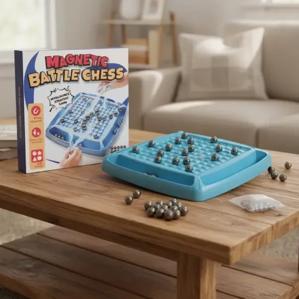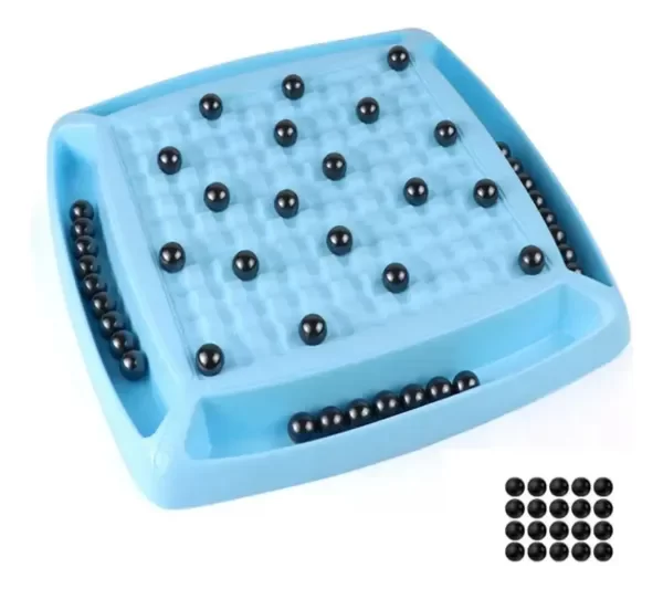 Los jugadores se turnan para colocar sus esferas magnéticas en cualquier espacio cóncavo del tablero y al hacerlo algunas se atraen entre sí. Deberás llevárselas y seguir jugando con todas ellas. Gana el primero en colocar todas sus esferas magnéticas sin que estas se unan entre sí.