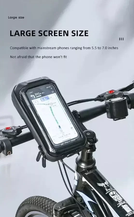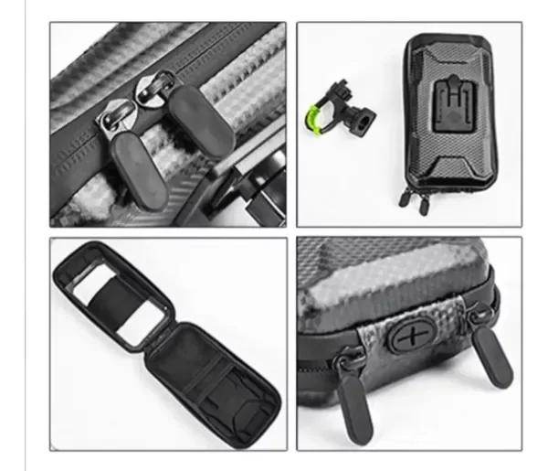 Es la solución ideal para transportar tu smartphone sobre moto, scooter o bicicleta, el sistema de fijación, compatible con el tubular de diámetro comprendido entre 8mm y 35mm con posibilidad de adaptarse en secciones no perfectamente redondeadas, permite poder utilizar este práctico accesorio en los vehículos dotados de manillar con diámetro superior a los clásicos 22mm, o en el soporte cilíndrico de los espejos retrovisores. Gracias al sistema de enganche ideado y patentado puede enganchar y desenganchar el porta smartphone del sistema de fijación es una operación muy sencilla e inmediata (hablamos de fracciones de segundo); apretando la palanca del soporte de fijación es posible regular la posición del porta smartphone en base a sus necesidades. Para evitar que cogiendo un bache o conduciendo por calles adoquinadas o mal pavimentadas se dañe el smartphone, está presente en el interior del bolsillo un “cojín amortiguador” que permanecerá en contacto directo con el dispositivo.