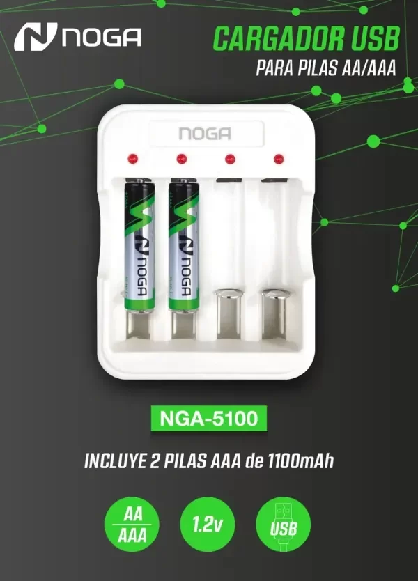 Cargador USB Noga NGA-5100 para pilas AA/AAA.