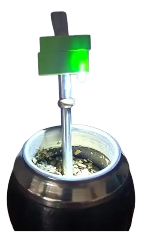 Es una opción conveniente para disfrutar de esta bebida en lugares oscuros o con poca iluminación. Estas luces son pequeñas y se colocan en la parte superior de la Bombilla del Mate. Cuando se encienden, emiten una luz potente que permite ver el nivel de yerba mate y disfrutar de la bebida en condiciones de poca luz. Este tipo de luces LED son útiles en situaciones como acampar por la noche, en ambientes con poca luz o en eventos nocturnos al aire libre, viendo una película o mientras viajamos en la ruta donde se quiera disfrutar de un buen mate sin necesidad de encender las luces internas. Además, su eficiencia energética permite que la pila dure bastante tiempo antes de necesitar ser reemplazada.