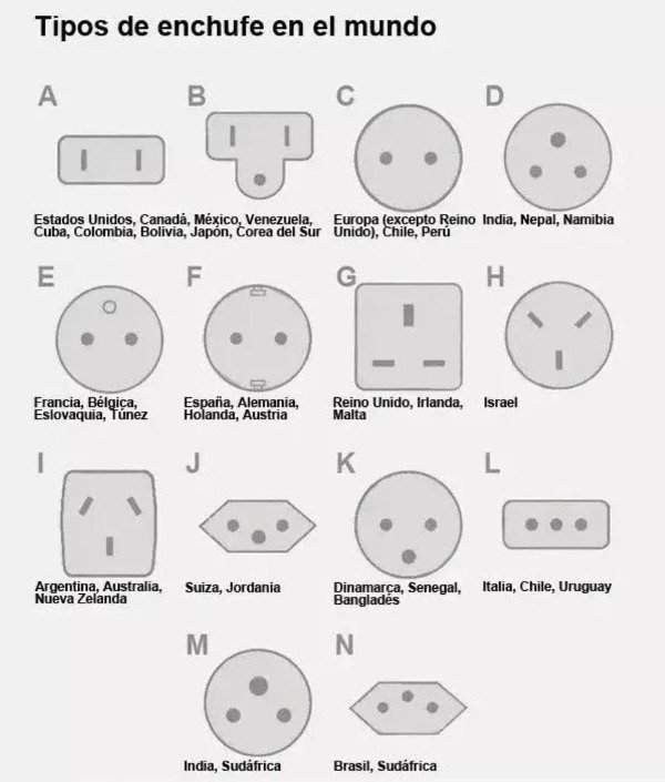 - Adapta Diversas clavijas para uso de artefactos en 150 países.