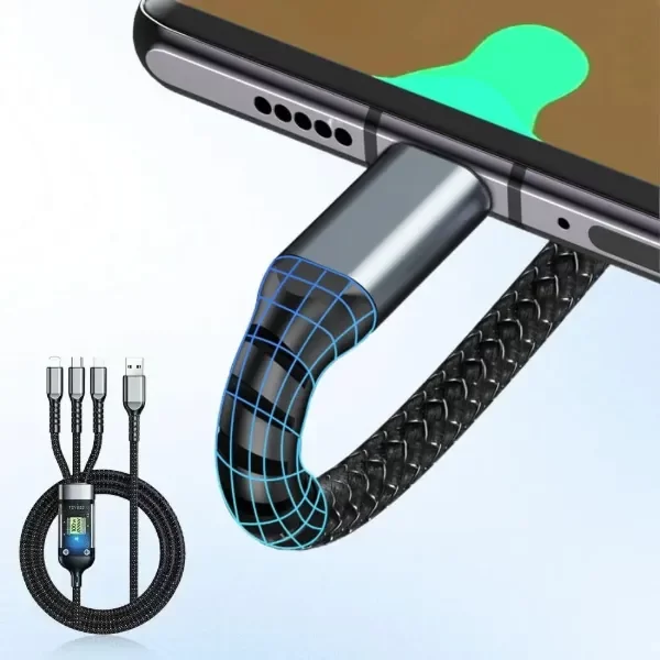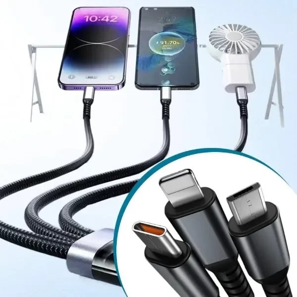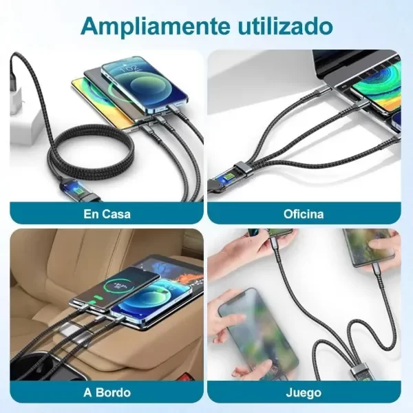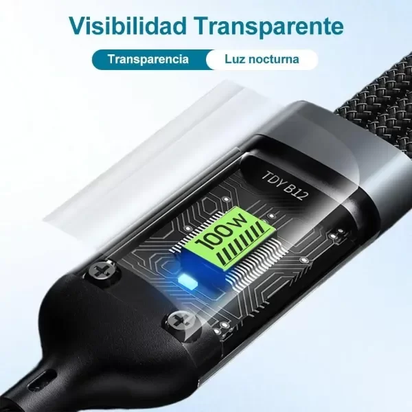 Compatible con múltiples dispositivos gracias a su diseño versátil que soporta carga y transferencia de datos para diversos tipos de conectores. Equipado con tecnología de carga de alta capacidad que asegura una carga rápida y eficiente para tus dispositivos. Su diseño transparente y luminoso no solo es atractivo visualmente, sino que también facilita su uso en ambientes con poca luz. Construcción resistente que previene los enredos, ideal para un uso prolongado y sin preocupaciones. Compacto y fácil de transportar, ideal para acompañarte en tus viajes y mantener todos tus dispositivos cargados y listos en cualquier momento.