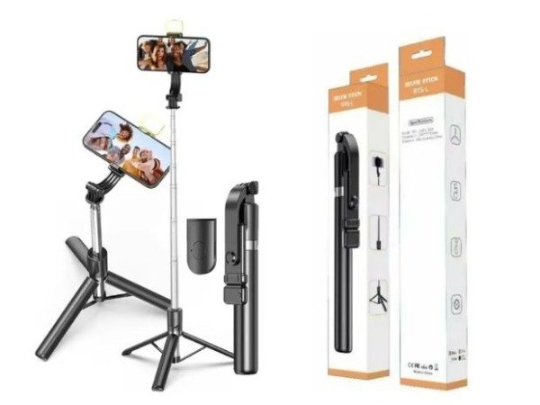 PALO BASTÓN SELFIE TRIPODE PARA CELULAR CON CONTROL REMOTO BLUETOOTH - INCLUYE LUZ FLASH RECARGABLE.