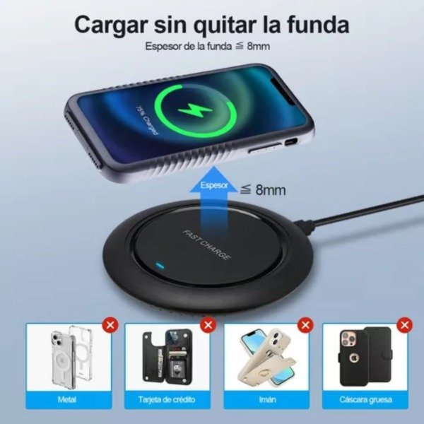 CARGADOR INALÁMBRICO QI CARGA RÁPIDA 15W UNIVERSAL CELULAR CONEXIÓN USB