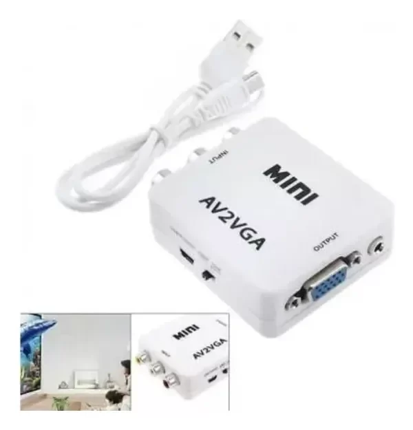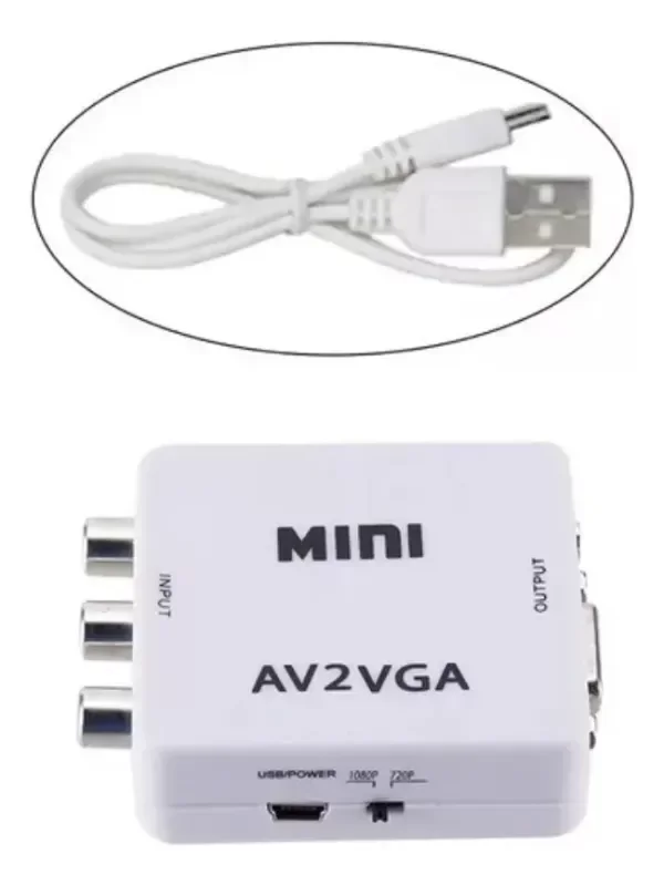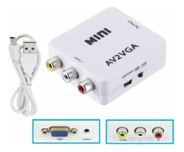 Conversor A/V RCA a VGA: Entrada A/V RCA / Salida VGA (no funciona en sentido inverso).
