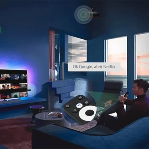 Con un sistema operativo Android y control por voz integrado, el manejo del contenido es más fácil que nunca. Solo con tu voz puedes buscar y seleccionar lo que deseas ver, haciendo tu experiencia más cómoda y eficiente.