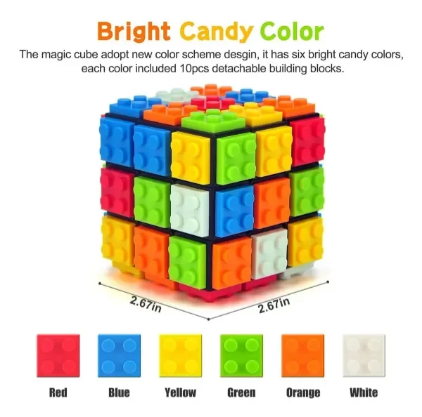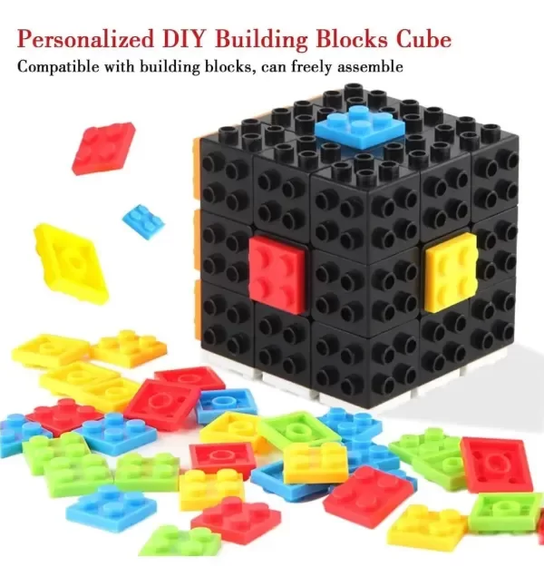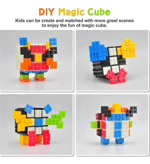 - Juguete de Rompecabezas 2 en 1. Nuestro cubo rápido es un juguete 2 en 1 (no magnético). Tiene un diseño estructural novedoso, consiste en un cubo base negro y piezas de bloques de construcción coloridos. Los niños pueden crear y emparejar con más escenas geniales para disfrutar de la diversión del cubo mágico.