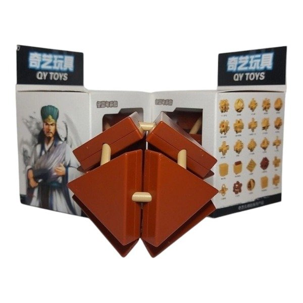 - Partes móviles con forma de triángulos (o piezas triangulares) que deben moverse, deslizarse o reordenarse para desbloquear el mecanismo.