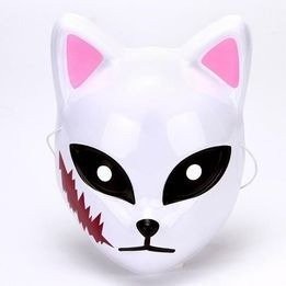 - **Sabito:** Máscara de zorro blanca con marcas distintivas de cicatrices en color rojo y un toque de verde alrededor de los ojos. El diseño incluye detalles precisos que reflejan fielmente la apariencia del personaje en el anime.