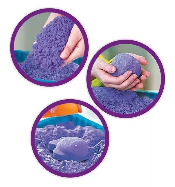 Entretenidas arenas para jugar improvisando la creatividad y la imaginación. Fácil de moldear y fácil de limpiar. Incluye: - 3 Arenas (no toxicas) con colores surtidos de 250 grs. cada una. - Accesorios de moldeado y bases con divertidas formas. Edad mínima recomendada: 3 años