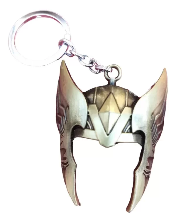 Lleva contigo el poder del Dios del Trueno con este impresionante llavero de metal del casco de Thor, inspirado en el emblemático diseño del héroe nórdico del universo Marvel. Fabricado en metal resistente y de gran durabilidad, reproduce con detalle las formas y relieves del clásico casco alado, símbolo de fuerza, valentía y protección.