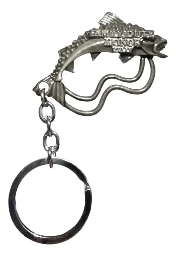 Rinde homenaje a la leal y orgullosa Casa Tully con este elegante llavero de metal tipo medallón, que presenta su emblemático escudo: el pez plateado saltando sobre franjas azul y rojo, símbolo de honor, familia y tradición. Fabricado en metal resistente de alta calidad, cuenta con un acabado en relieve que resalta cada detalle del diseño.