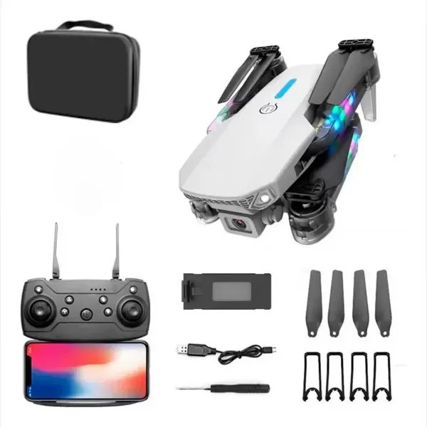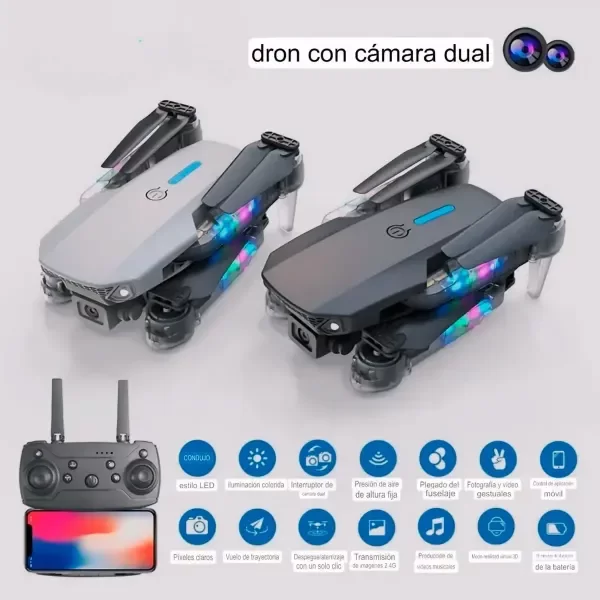 Drone E88 El drone E88, es una opción ideal para aquellos que desean explorar el mundo desde nuevas alturas. Permite tomar fotos y grabar videos desde diferentes ángulos, brindando una perspectiva única.