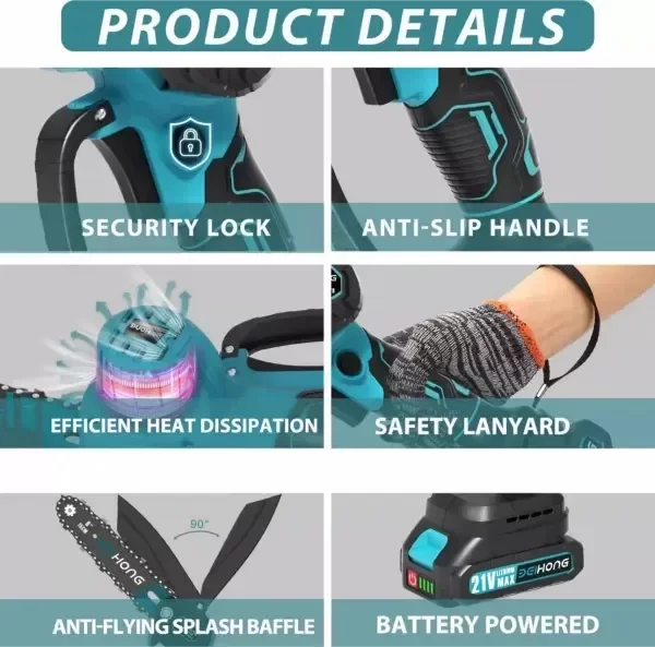 Motosierra de mano súper práctica, color azul y negro.