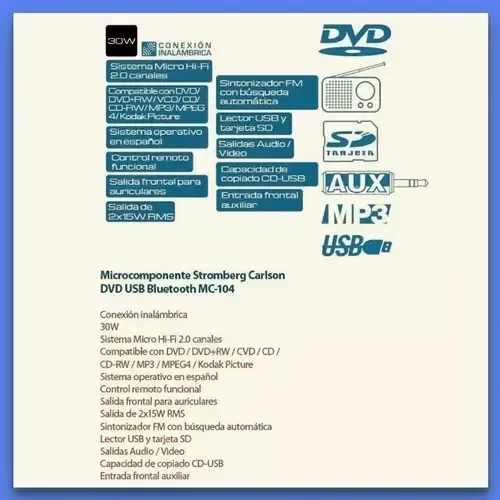 Compatible con DVD / DVD+RW / CVD / CD / CD-RW / MP3 / MPEG4 / Kodak Picture