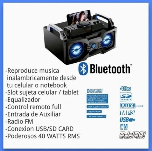 - Reproduce música de forma inalámbrica desde celulares o notebooks