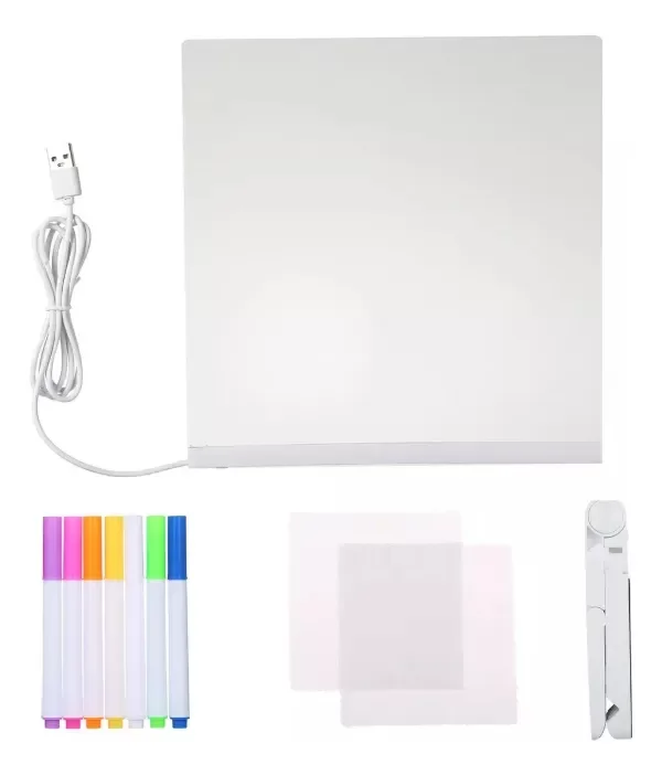 Incluye siete marcadores de colores vibrantes, lo que te permite personalizar tus mensajes y dibujos de manera sencilla y divertida. Ideal para presentaciones, recordatorios o simplemente para dejar volar tu imaginación, esta pizarra es versátil y fácil de usar. Conéctala a cualquier puerto USB y disfruta de su iluminación LED que realza tus creaciones.