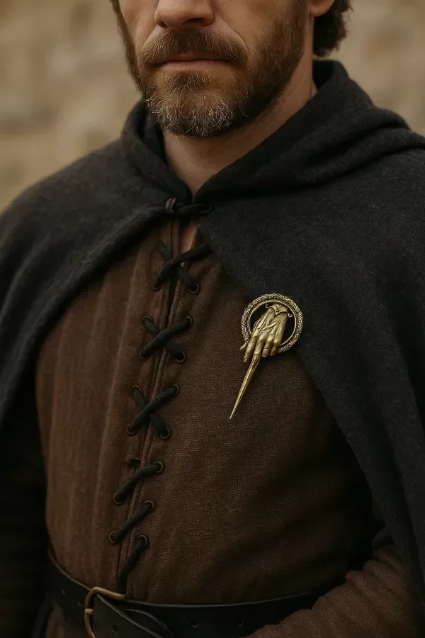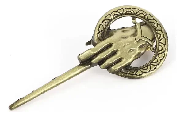 Porta el símbolo de autoridad más reconocido de los Siete Reinos con este prendedor de la Mano del Rey, inspirado en el icónico diseño visto en Game of Thrones. Fabricado en metal resistente y con un acabado envejecido de alta calidad, representa la clásica mano dorada sosteniendo una daga, emblema del poder y la máxima confianza otorgada por el monarca.