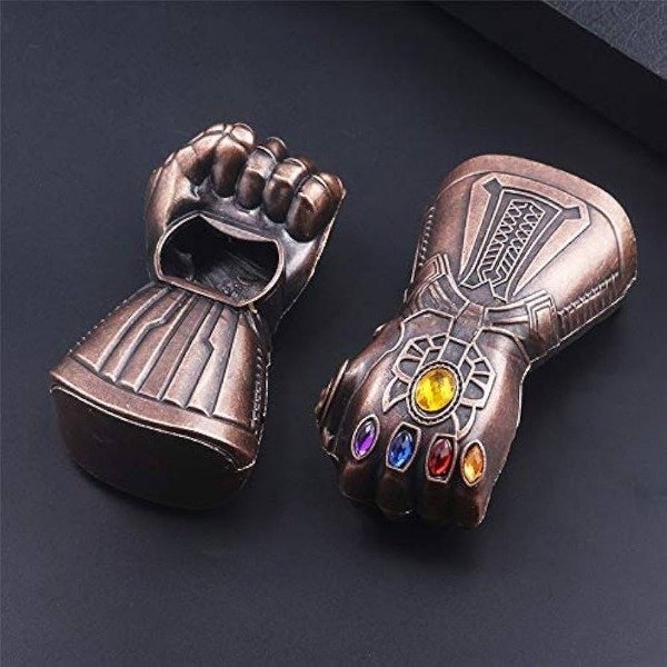 - **Tamaño**: Generalmente, tiene un tamaño similar al de un destapador convencional, pero con la forma detallada del guante de Thanos.