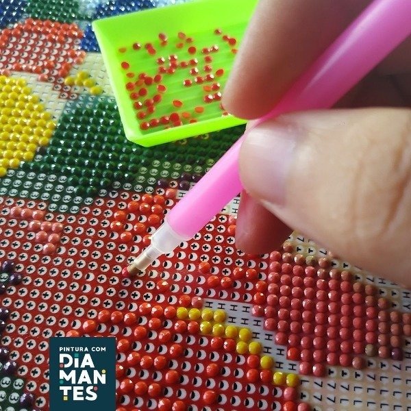 Las cuentas en los paquetes numerados corresponden con la tabla de colores en el lateral del dibujo, coloca unas cuentas numeradas en la bandeja de plástico, coge el "bolígrafo" y toca el extremo con el material adhesivo en el bloque cuadrado, luego coge una cuenta y colócala en el número correspondiente del lienzo.