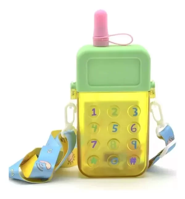 Diseño Único: Con su forma de teléfono móvil y colores vibrantes, esta botella no solo es funcional, sino que también es un accesorio encantador que destaca entre la multitud.