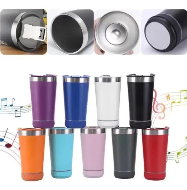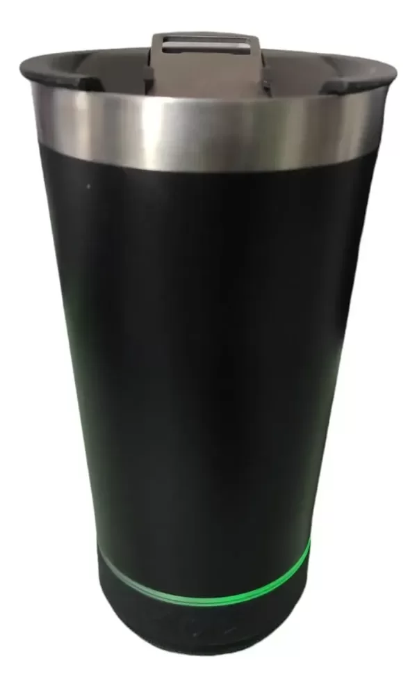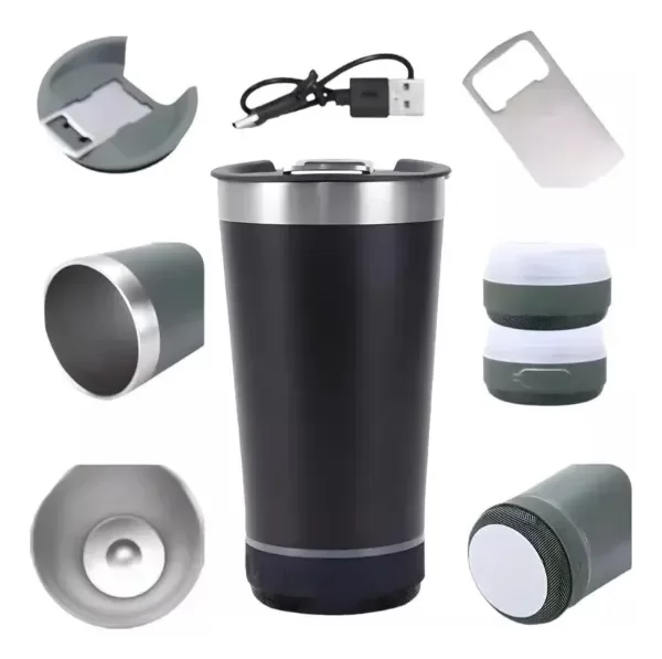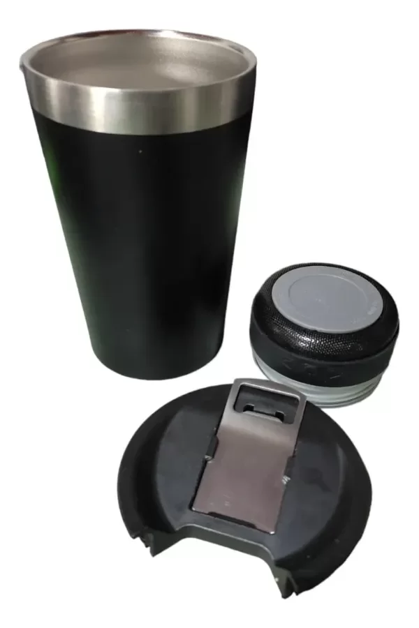 VASO TERMICO CON PARLANTE BLUETOOTH Y DESTAPADOR COLOR NEGRO