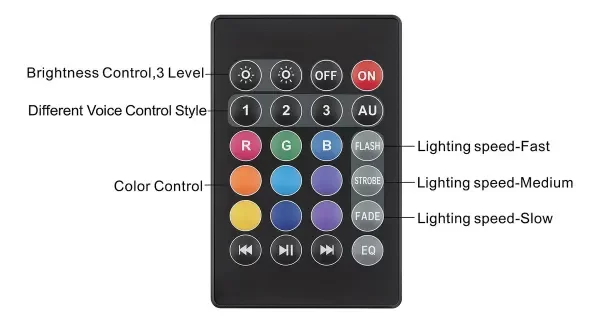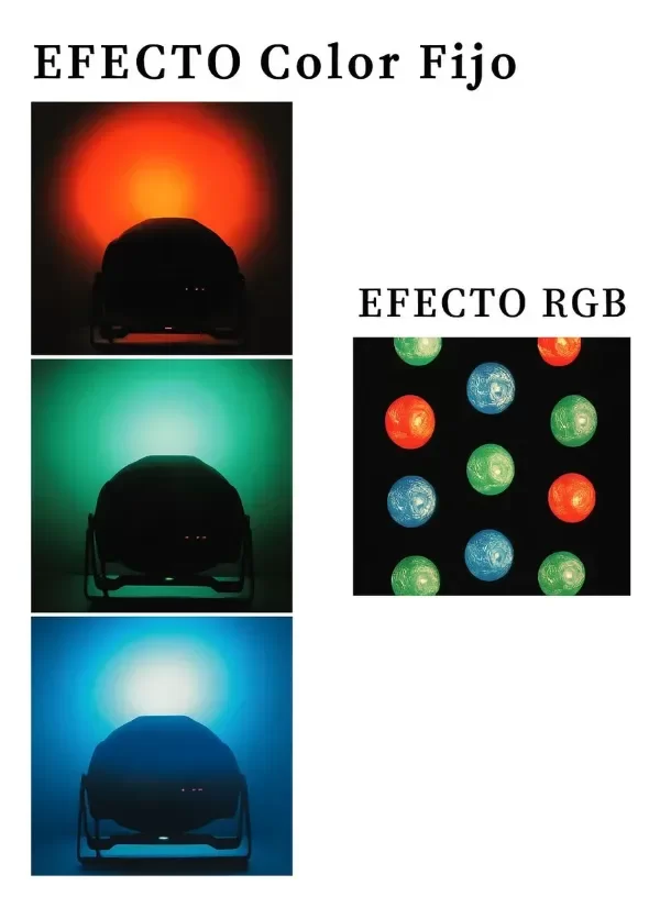 Con el mando a distancia IR suministrado, puede seleccionar uno de los 3 programas de espectáculos preestablecidos, así como los colores básicos rojo, verde y azul, además de 7 fantásticos colores combinados. El brillo, la velocidad de funcionamiento y la sensibilidad del micrófono también se pueden ajustar fácilmente.