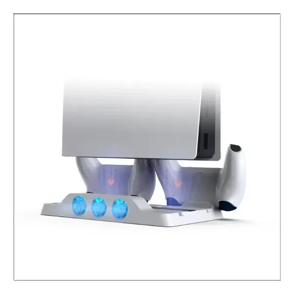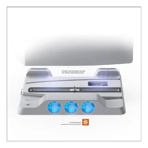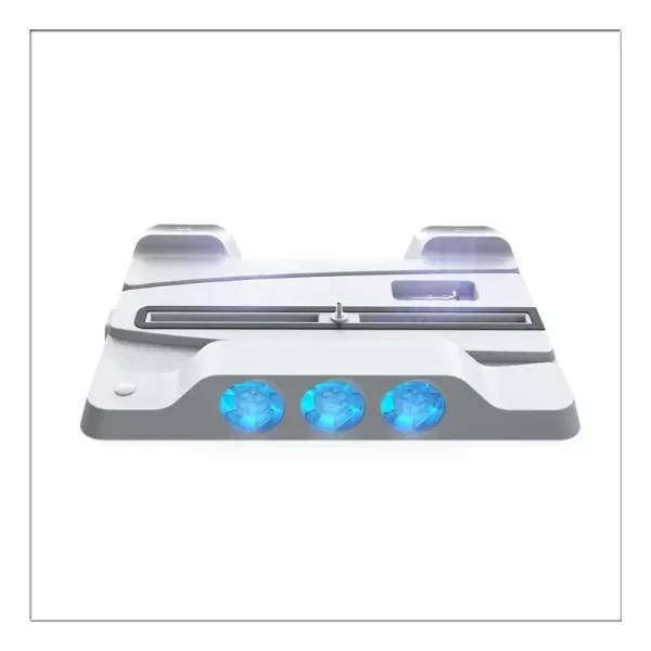 1-Tres Ventiladores, la base cuenta con 3 ventiladores para enfriar la consola de PS5, se puede evitar sobrecaliente de la consola.