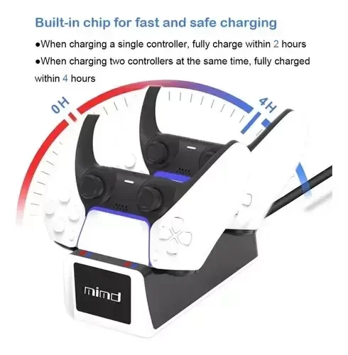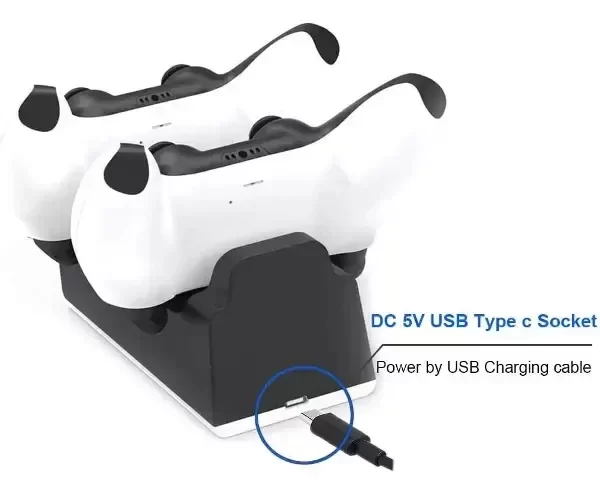 Este soporte de cargador de controlador para PS5 PlayStation 5 viene con conectores integrados, lo que le permite almacenar y cargar de forma segura dos Joystick de PS5 simultáneamente sin tener que conectarlos al sistema PS5.